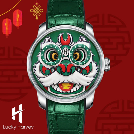 La montre Lucky Harvey Lion, un hymne à la danse du lion. Chaque tic-tac est un pas de danse, chaque couleur un éclat de joie. Inspirée des mouvements gracieux et énergiques du lion, cette montre capture l'essence même des célébrations chinoises. Les nuances vibrantes et les lignes fluides évoquent la vitalité et la bonne fortune.