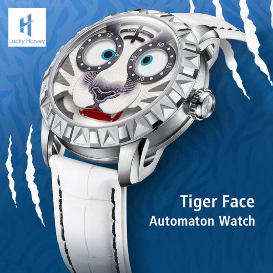 La collection Tiger s'inspire de l'année lunaire chinoise du tigre et est limitée à 2 022 exemplaires dans le monde. La montre est fabriquée avec le propre mouvement de Lucky Harvey. L'œil gauche tourne pour afficher l'heure et l'œil droit tourne pour afficher les minutes. À chaque heure, les dents du tigre situées à 6 heures se dévoilent lentement de haut en bas, puis reprennent leur position initiale. Le cadran a un effet lumineux bleu-vert qui vous permet de ne pas craindre l'obscurité.